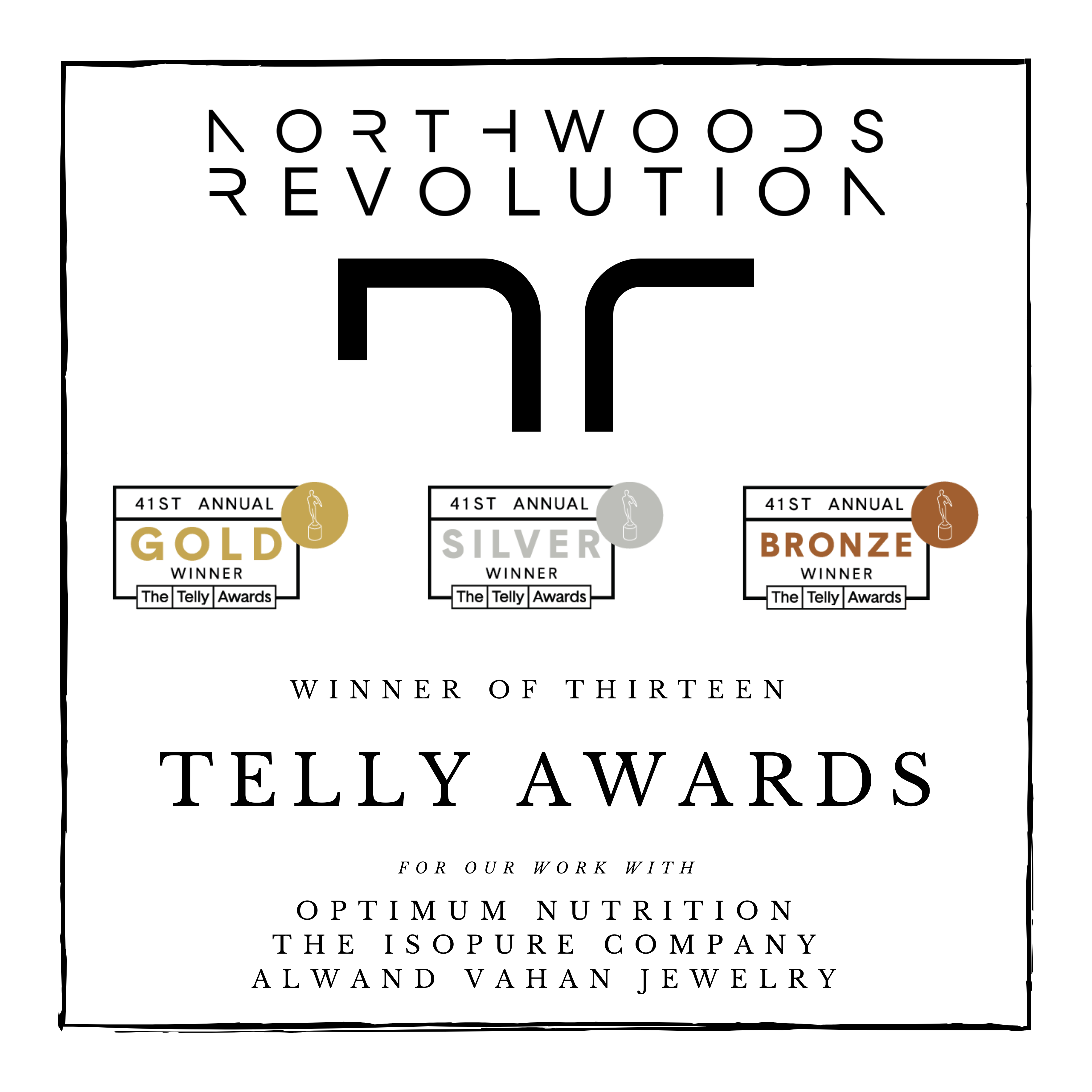 Northwoods Revolution Awarded 13 Different Telly Awards Including 1 for Production Company/Ad Agency Demo Reel in Branded Content in the 41st Annual Telly Awards