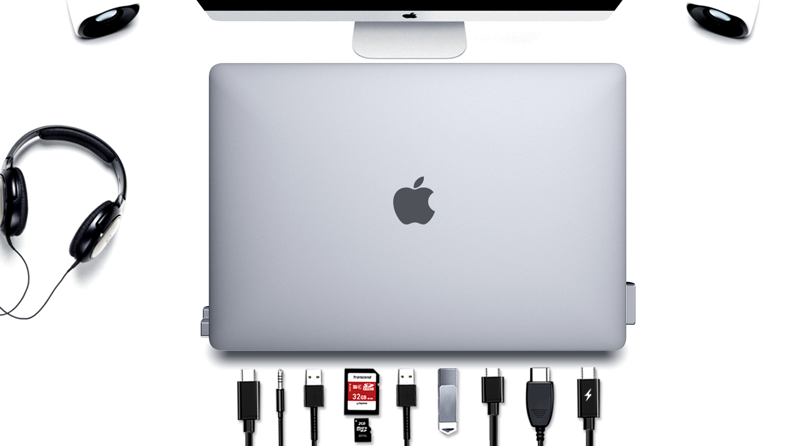 DGRule is ultra-lightweight, compact, portable, comes in gray and silver - colors that blend with the MacBook design, and snaps into both side ports. The dongle-free and powerful multi-function hub reaches speeds up to 40 GBs while charging simultaneous charging the computer. It connects up to 10 cords, has a built-in cooling pad to prevent overheating, includes a stability feature, and by size comparison, is as thin as the iPhone 11 Pro.