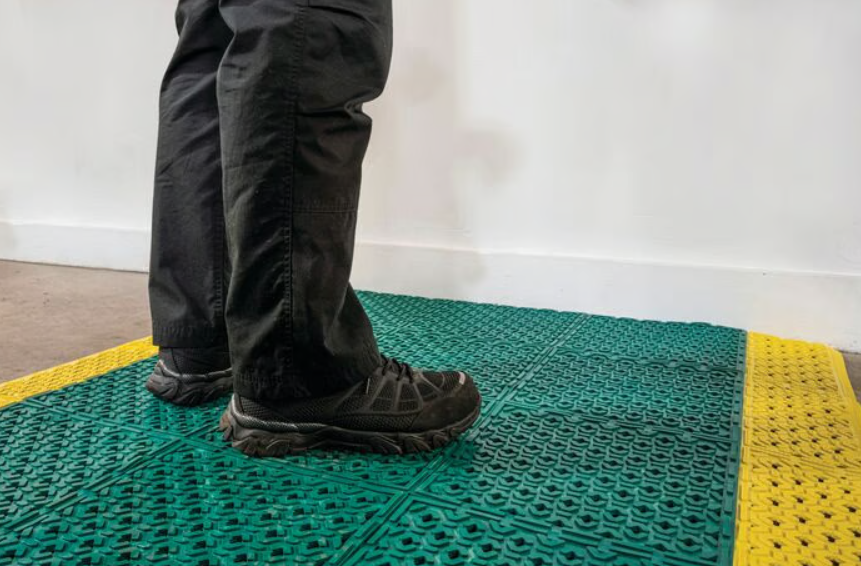 To remain OSHA-compliant, emergency shower and eyewash stations must meet ANSI/ISEA Z358.1-2014 standards. This includes ensuring the station is located in a well-lit, prominent position, highly visible, with the space around the unit free from obstructions. Along with helping companies meet this important safety requirement, the 524 Eyewash Station Mats are slightly elevated with beveled ramp edging to prevent trips and falls. Mats utilize a waffle drainage system design to keep users above possible hazardous overflow while draining quickly.