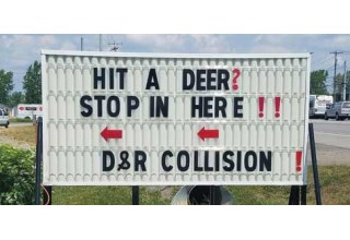 When you approach D&R Collision on a busy roadway in Lockport, NY, the sign in front of the body shop reads: “Hit a deer? Stop in here!!”