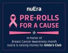 Throughout the month of October nuEra's five dispensary locations will be donating $1 per unit sold of special edition cannabis flower pre-rolls and "Blazy Diamonds" infused pre-rolls. They are also donating net revenue from sales of a "show your support" pink nuEra logo pin. Proceeds will go to Gilda's Club, whose services include support groups, counseling, education and healthy lifestyle programs.