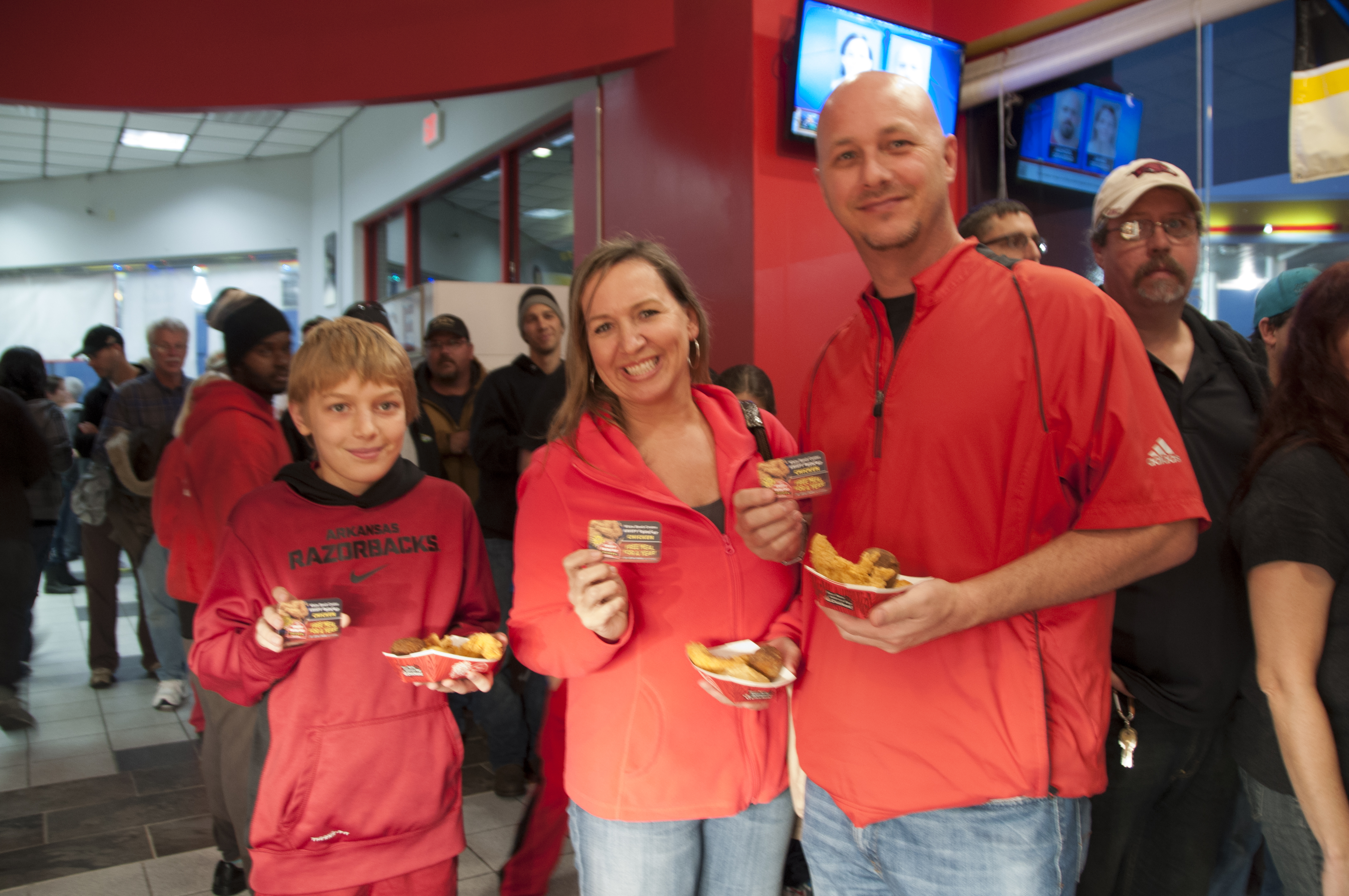Of the hundreds that attended the Grand Opening, all patrons received discount meal vouchers. Local radio station, Hog Sports Radio, held a live remote at the event and one determined customer even traveled from Little Rock for Krispy Krunchy Chicken’s Grand Opening. Comments on the food were very positive.