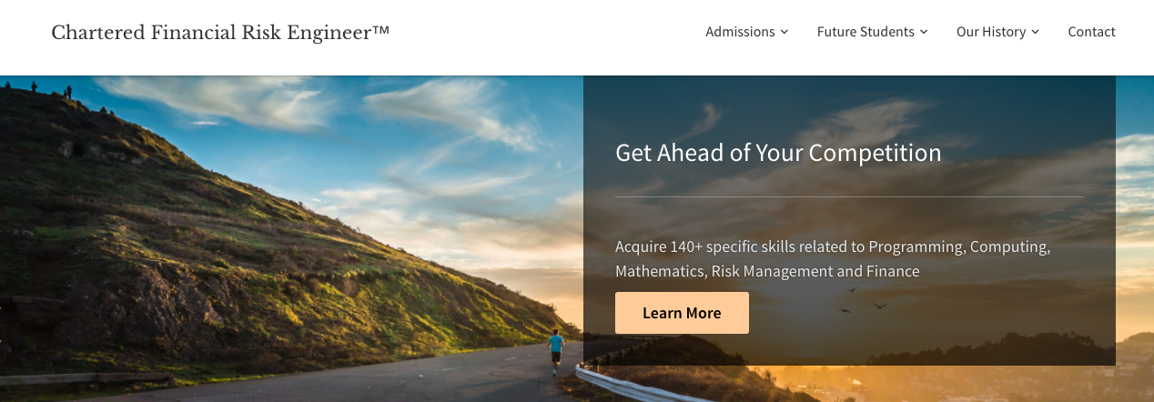 To be admitted to the ten-month program, prospective delegates will have to complete an online admission exam, designed to test for the essential quantitative aptitude and abilities that are so critical for developing a sound understanding of financial risk management. For candidates who require a comprehensive review of the quantitative tools, admission to the program may be secured by completing the Institute's Quantitative Methods for Finance Professional Certificate.