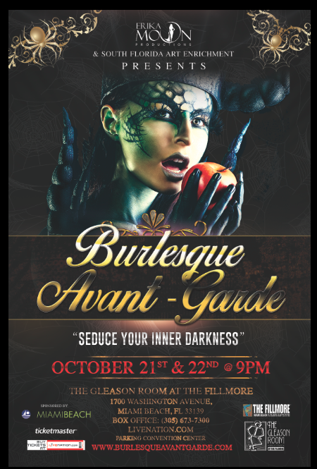 October 21st-22nd, Halloween Show, Burlesque Avant-Garde by Erika Moon at the Gleason Room, Miami Beach
