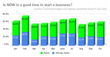 NORFOLK, Va., November 10, 2020 (Newswire.com) - The number of respondents agreeing that "now is a good time to start a business" reached a three-month high at 60.6% in October, from a monthly survey of individuals who have recently inquired about businesses for sale, in responses collected Oct. 24-26, 2020, for the FranchiseInsights.com Small Business Startup Sentiment Index™ (SSI).