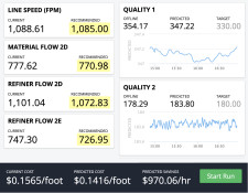 Process AI provides operators live process-setting guidance for decreasing material or energy costs, or increasing speed, while maintaining quality spec for every run and respecting company-defined tolerances and current operating constraints. The interface allows operators to easily compare recommendations against the current process settings, and provides them a live estimate of the value (e.g., cost savings) to incentivize action. Recommendations are automatically generated from past data, eliminating the need for continuous input from time-constrained experts like data scientists and analysts. This alleviates a significant bottleneck in using data to drive productivity. An early customer of Process AI experienced a five percent improvement in related costs, and was able to increase line speed by three percent within a six-month pilot, which will lead to more than 10X ROI.