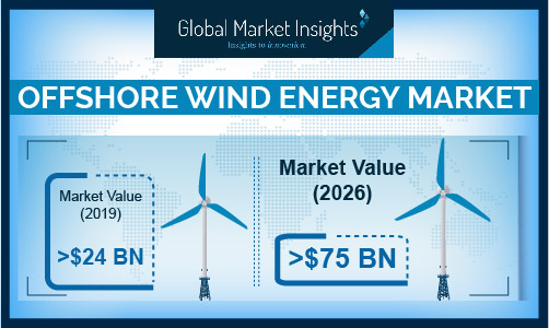 SELBYVILLE, Del., June 30, 2020 (Newswire.com) - According to the latest report "Offshore Wind Energy Market by Component (Turbine {Rating (≤ 2 MW, >2≤ 5 MW, >5≤ 8 MW, >8≤10 MW, >10≤ 12 MW, > 12 MW), Installation (Floating {Axis {Horizontal [Up-wind, Down-wind], Vertical (VAWTs)}, Component [Blades, Tower]}, Fixed {Axis {Horizontal (HAWTs) [Up-wind, Down-wind], Vertical (VAWTs)}, Component [Blade, Tower]}}}), Support Structure (Substructure (Steel), Foundation {Monopile, Jacket}), Electrical Infrastructure (Wires & Cables, Substation)), Depth (>0 ≤ 30 m, >30 ≤ 50 m, > 50 m), Regional Outlook, Competitive Market Share & Forecast 2026", by Global Market Insights, Inc., the market valuation of offshore wind will cross $75 billion by 2026.