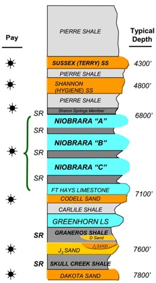 Pathfinder #1 intersects the Pierre, Niobrara the Greenhorn reservoirs (see Image 2 below)
