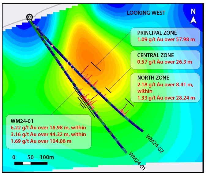 Gold mineralization has been extended east of the previous results in WM24-01 and WM22-02