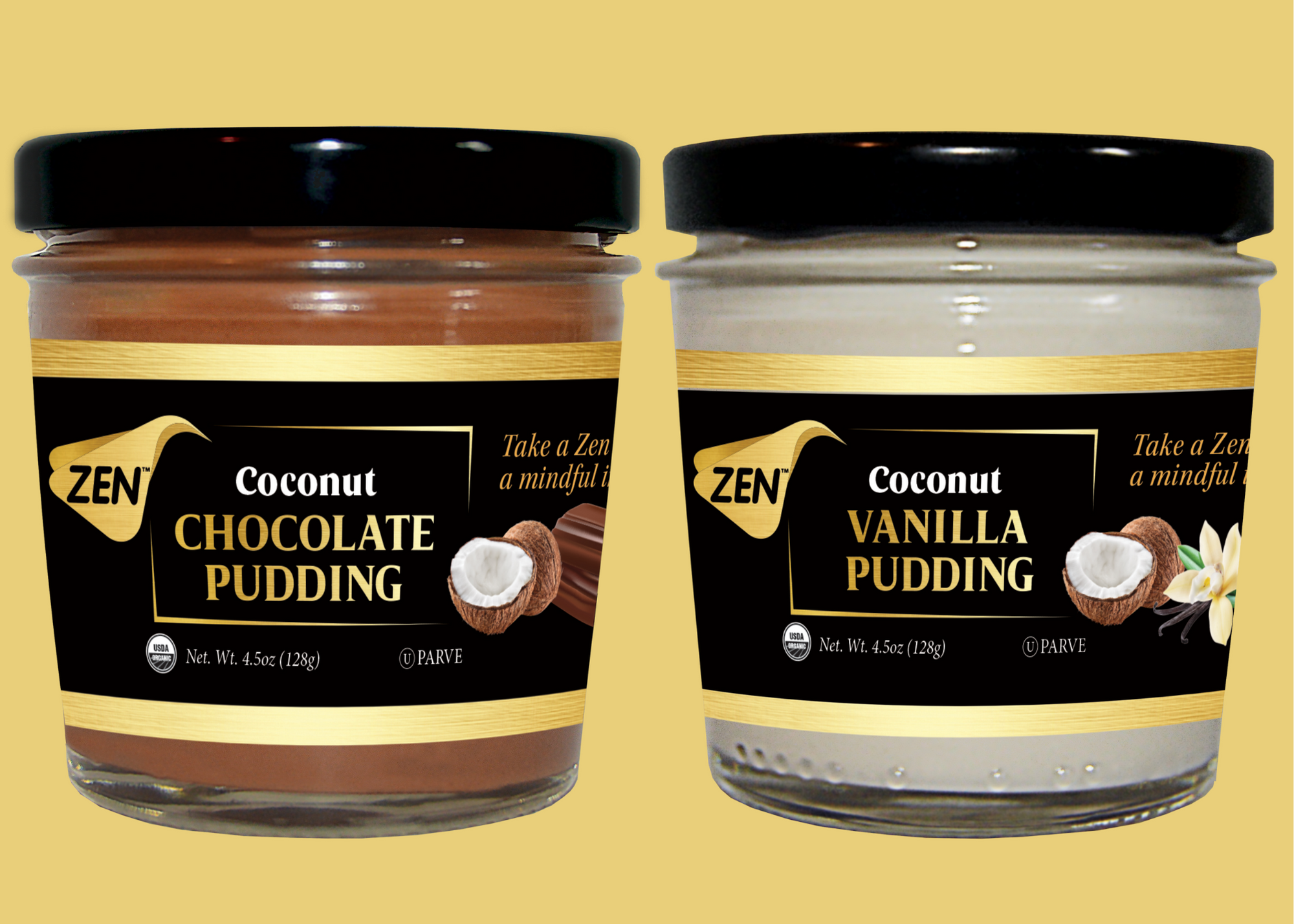 Zen's newest products are more premium targeting adults, indulgence, and sustainability. The chocolate and vanilla coconut puddings are sold individually in 4.5 oz recyclable glass jars. Each pudding is made with simple, clean ingredients while still having that rich and creamy mouthfeel. Zen pudding satisfies consumers' indulgence without them feeling guilty for having a treat.