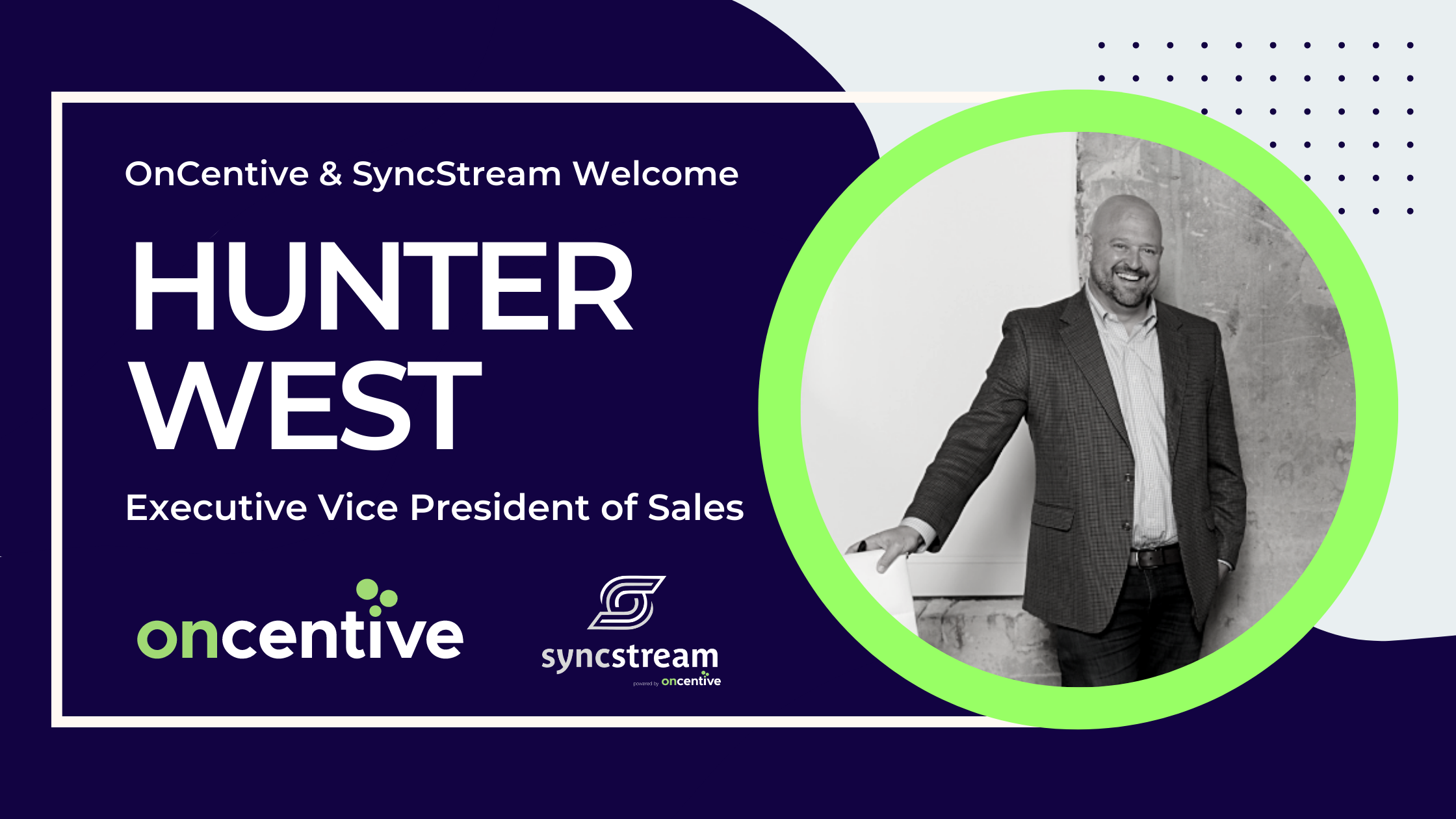 "While we certainly recruited Hunter because of his extensive knowledge base in a wide array of HR technologies and solutions, it is his tireless focus on customer education, commitment to ensuring customers receive the best solution for their needs, and empowering leadership style that truly makes him an outstanding asset to the organization," said Shannon Scott, CEO of OnCentive and SyncStream.