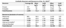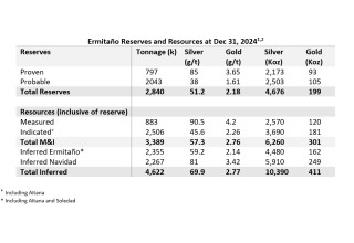 From December 31, 2023 to December 31, 2024, the Measured and Indicated resource estimate decreased by 41,000 ounces of contained gold and 6.4 million ounces of contained silver primarily due to mineral depletion, partially offset by infill drilling, changing metal prices, and metallurgical recoveries. The Inferred resource estimate increased by 2.57 million tonnes of ore, 257,000 ounces of contained gold and 6.11 million ounces of contained silver primarily related to discovery and first-time reporting of the Navidad resource.