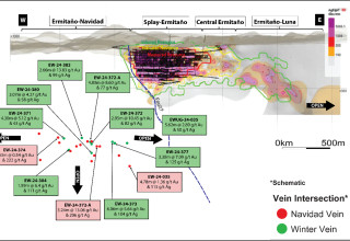 Mineralization in the Luna vein remains open to the east and the Navidad and Winter veins remain open in multiple directions with several drill rigs active on the Ermitaño concession.