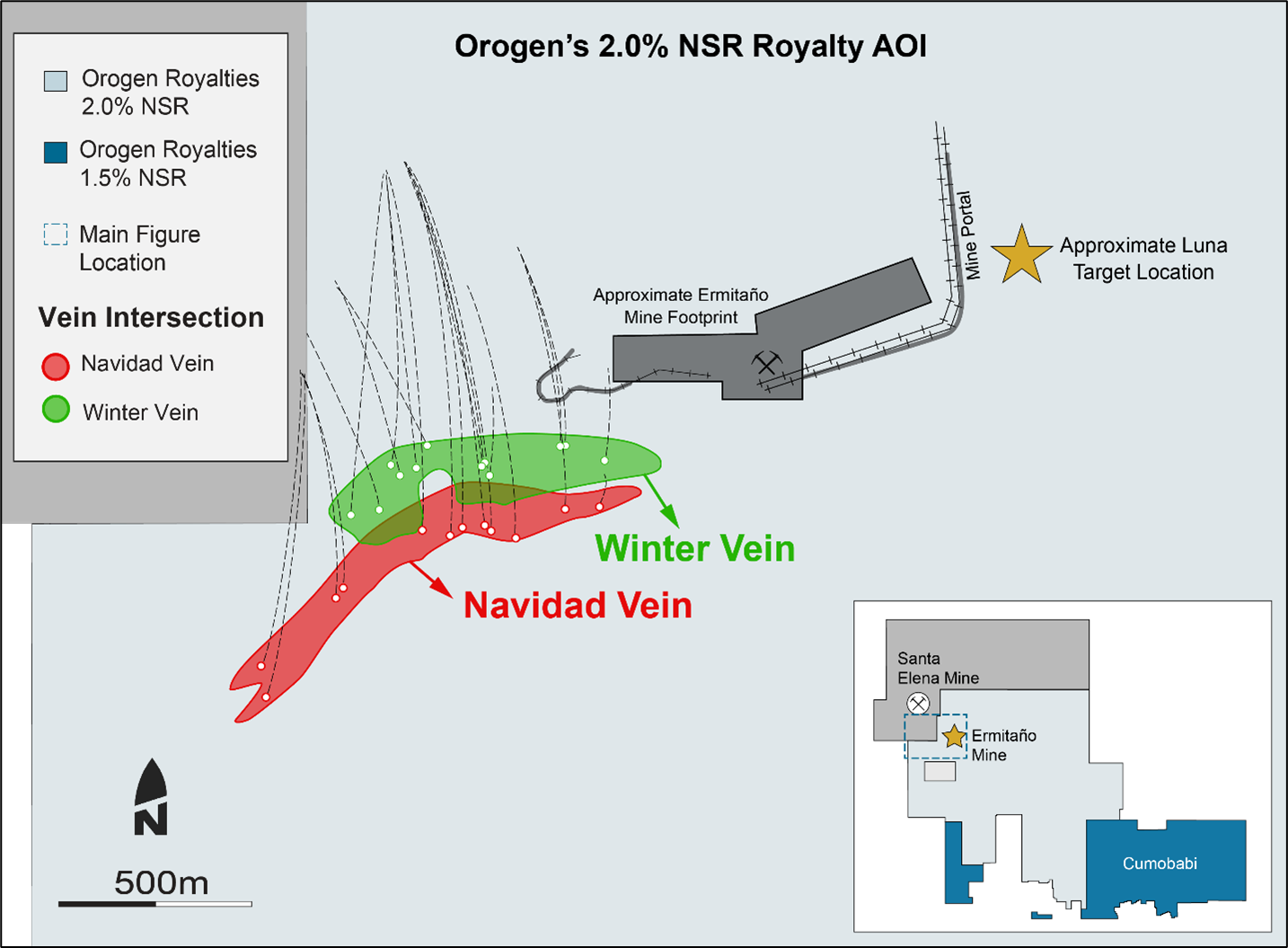 Paddy Nicol, Orogen's CEO, commented, "The initial Inferred resource at Navidad represents an exciting development for Orogen's producing royalty on the Ermitaño Mine, with the announced update increasing contained gold in the Inferred category by 260% year on year. The Navidad resource represents only a portion of the newly delineated vein system with 55,000 metres of drilling planned in 2025 to further test the upside potential of the area."