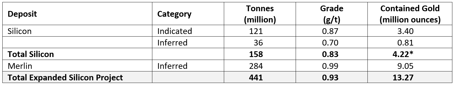 Table 1: Expanded Silicon Project Summary Mineral Resources3,4
