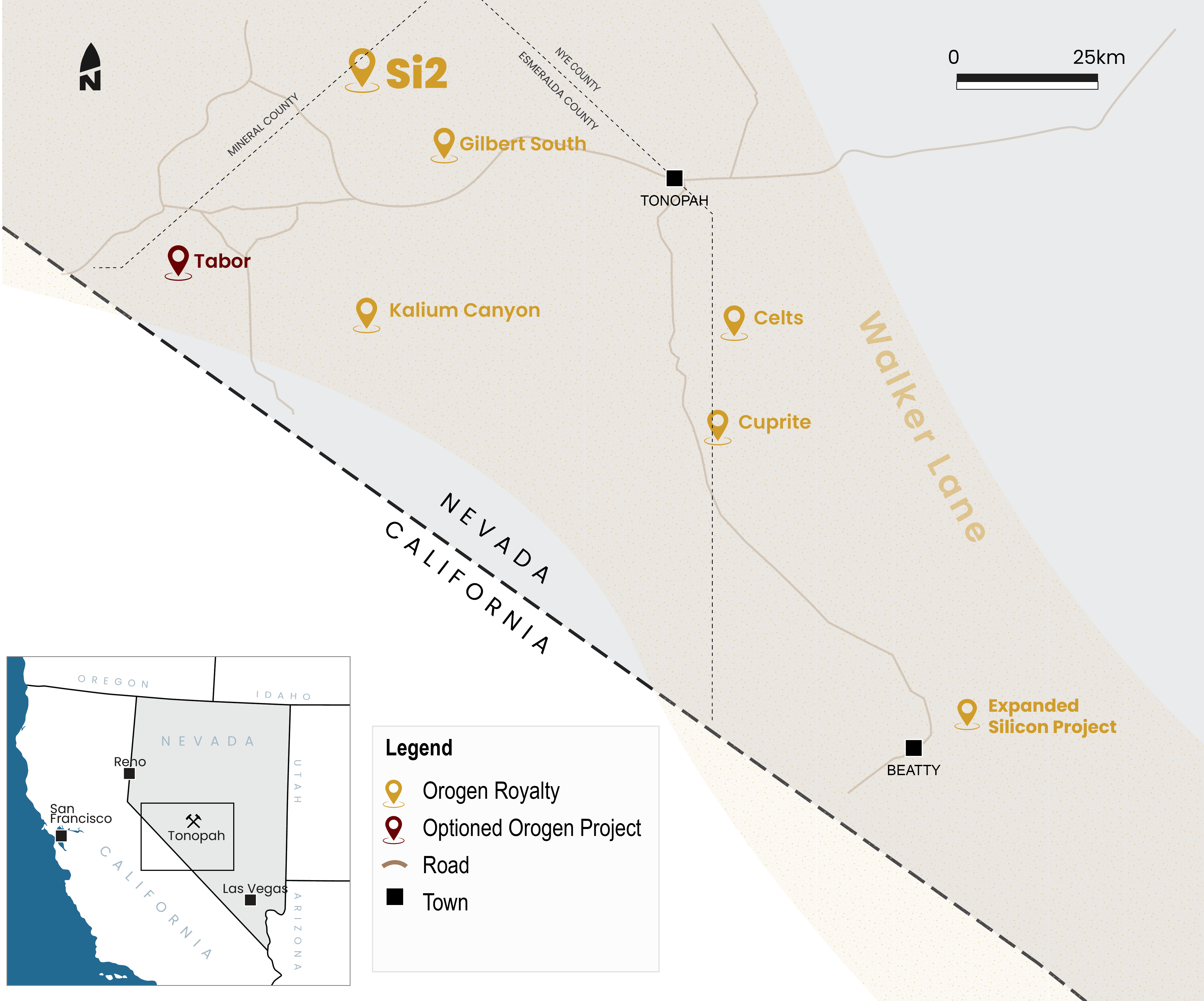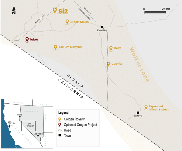 VANCOUVER, January 16, 2025 (Newswire.com) - Orogen Royalties Inc. (TSXV:OGN)(OTCQX:OGNRF) ("Orogen" or the "Company") is pleased to announce that the Company has signed a purchase and sale agreement (the "Agreement") with K2 Gold Corporation ("K2") (TSXV:KTO) whereby K2 has acquired the Si2 gold project ("Si2" or the "Project"), located in Nevada, USA. The Agreement replaces the option agreement ("Option Agreement") previously signed between Orogen and K2 on January 19, 2022.1
