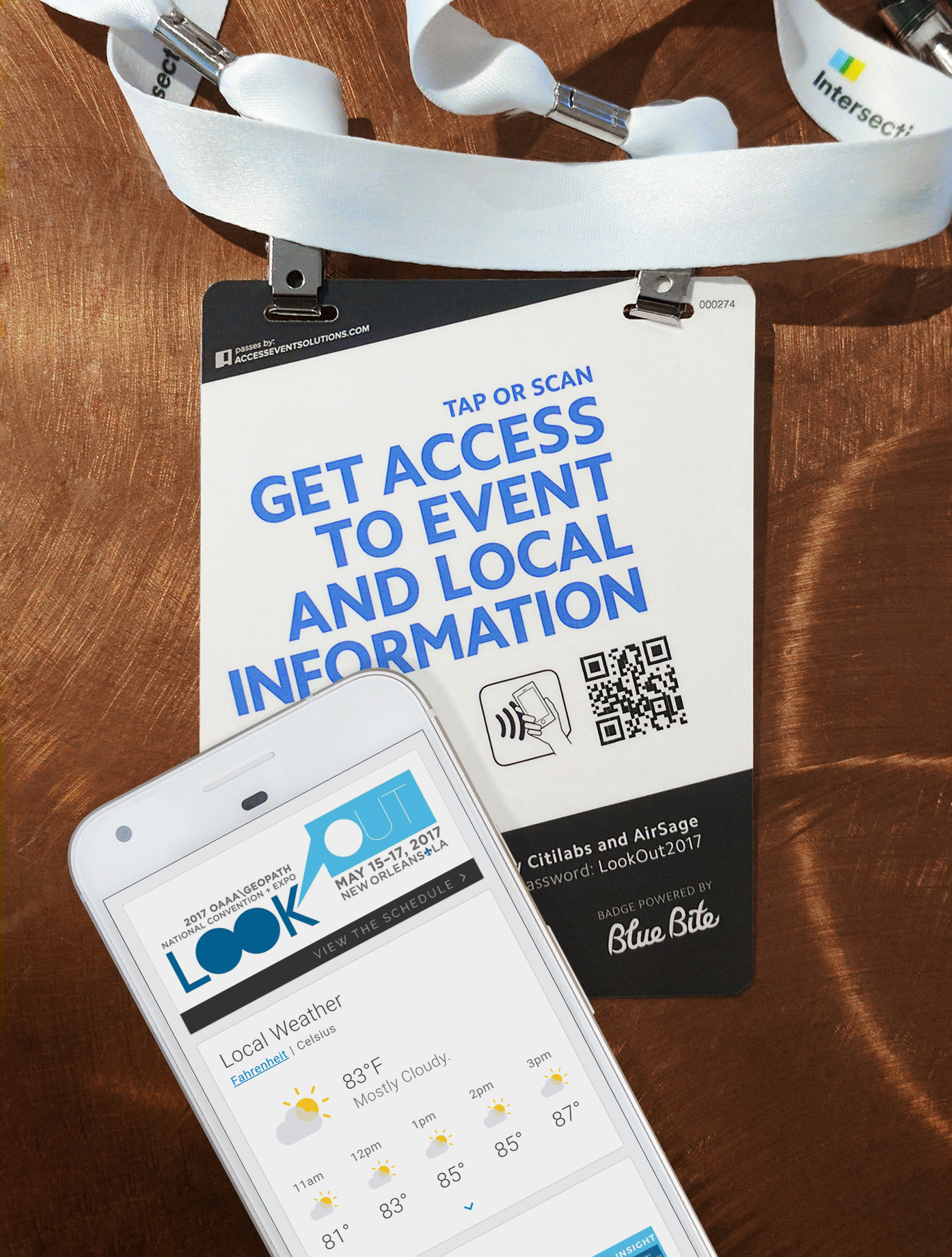 Each conference badge was enabled with dual-sensor technology. Attendees tapped their phones against the NFC-enabled badge to receive conference materials, contextual content and real-time information, including the event agenda, local weather updates, social media feeds and nearby restaurants.