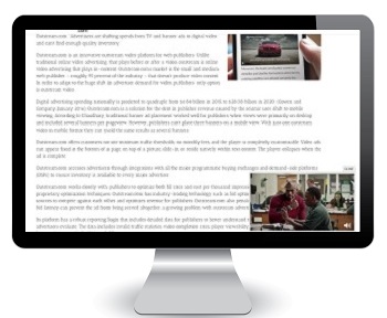 Outstream.com is an innovative outstream video platform for web publishers. Unlike traditional online video advertising that plays before or after a video, outstream is online video advertising that plays in-content. Outstream.com’s market is the small and medium web publisher – roughly 95 percent of the industry – that doesn’t produce video content. In order to adapt to the huge shift in advertiser demand for video, publishers’ only option is outstream video.