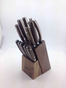 The 13-piece set comes with a chef knife, bread knife, carving knife, utility knife, paring knife, steak knives, kitchen shears, and a walnut wood block. The knives are made from VG10 Super Steel 67 Layer high-carbon stainless steel, which enables them to have steel-razor sharp edges and unmatched edge retention for a durability that lasts meal after meal.