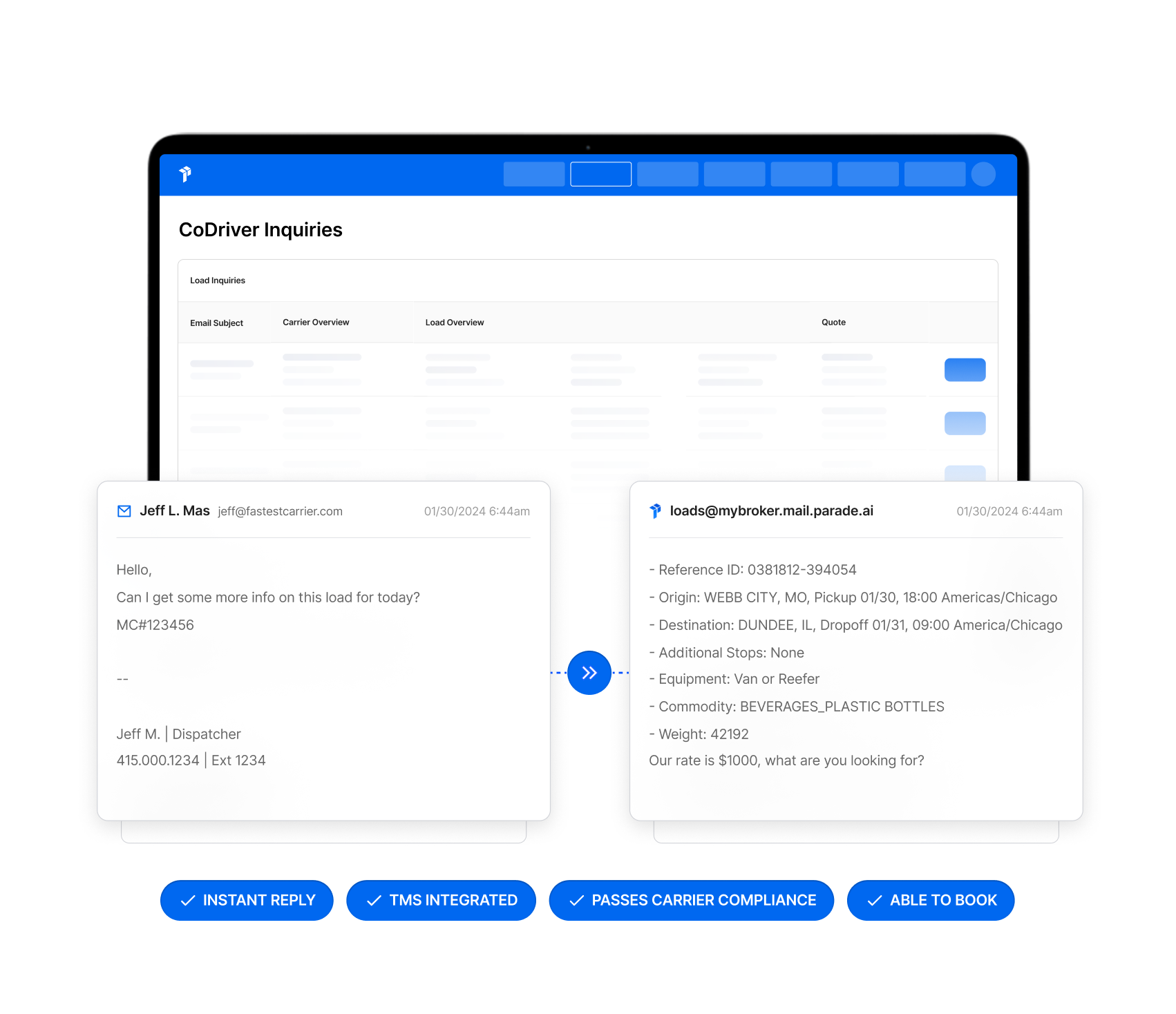 “The integration of Parade’s Capacity CoDriver into PowerBroker is a testament to our dedication to leading the digital transformation in the freight brokerage industry,” said Robert Brothers, VP of Product Development at McLeod Software. “This partnership leverages the strengths of both platforms to offer our customers a powerful tool that drives efficiency, accelerates load booking, and enhances profitability.”