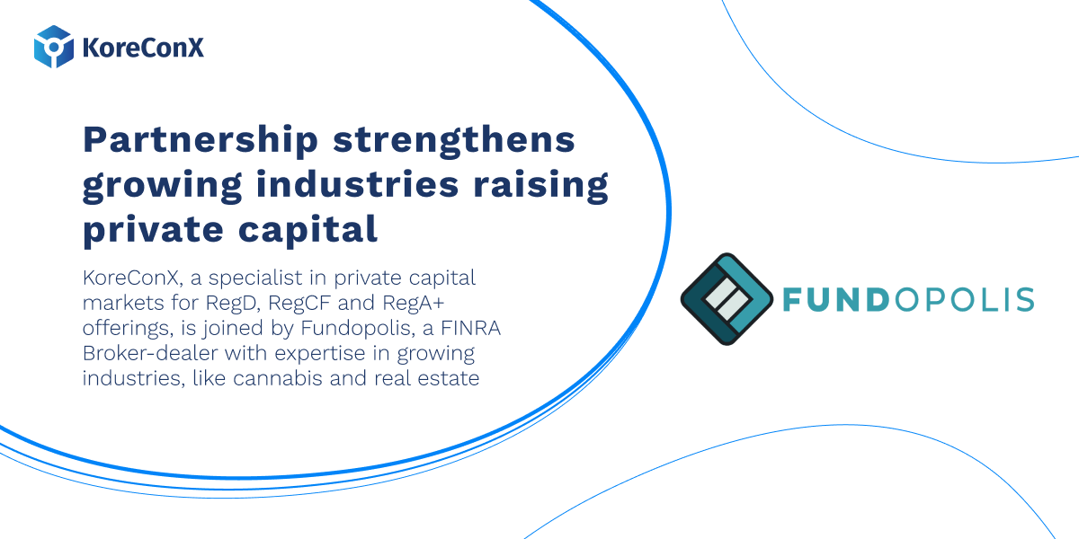 "Beyond that, we understand that the investment landscape is constantly changing, and we pride ourselves on approaching the entire process with an eye on what is possible. As a recordkeeping transfer agent and escrow platform, we believe KoreConX is the perfect partner for Fundopolis, providing access to a vast ecosystem of investors and issuers," says Bert Pearsall, CEO & Managing Principal at Fundopolis.