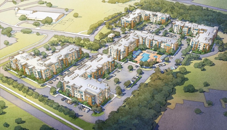 The $85 million-dollar project, situated on 18.1 acres, will consist of 460 Class A for-rent multifamily units, developed within five, elevator serviced, four-story buildings. Each building will be a fully enclosed, secure, air-conditioned structure with the facilities to include an integrated clubhouse that will offer a variety of amenities along with a resort-style swimming pool.