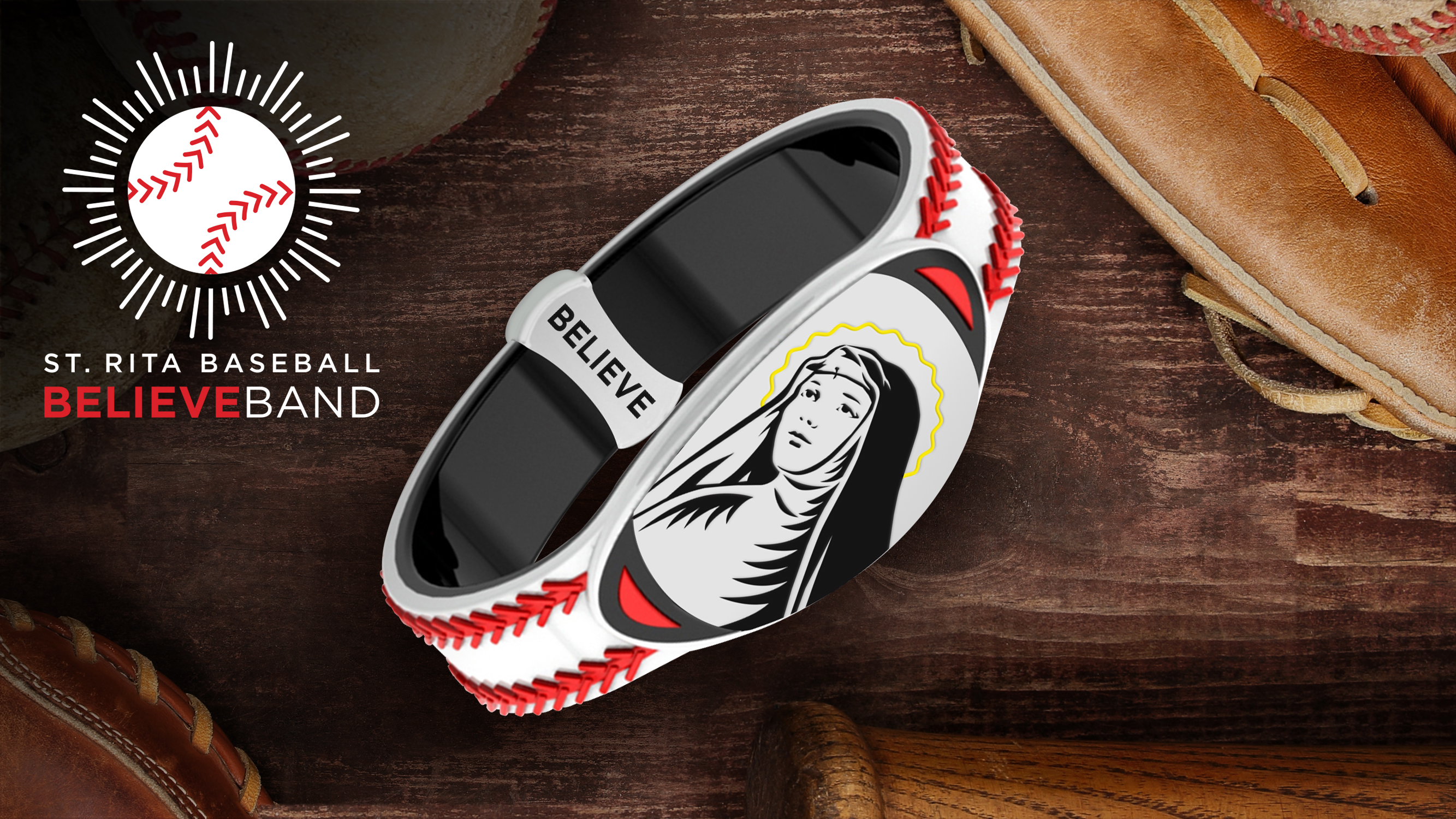 The durable St. Rita Believe bracelet, designed by Andy Castellanos, is made from 100% silicone. To order yours today, visit https://www.baseballbelieve.com/product/believe-band/