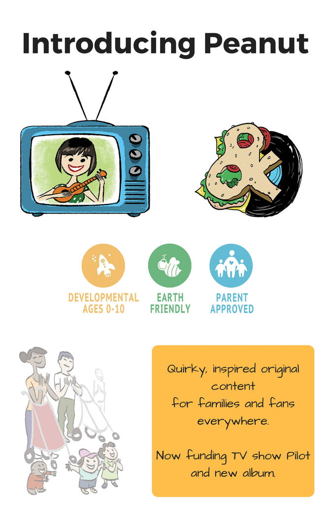 The Peanut team has been working very diligently on all of the essential groundwork for the new album and TV show, and they are now ready to begin the process of sharing the joy. Peanut has teamed up with some vetted Los Angeles talent to make this a reality, but they need help from the public, which is why they have launched their Kickstarter campaign and hired a team of crowdfunding specialists to help them spread the word. All funds raised with this campaign will go toward making the dream a reality, starting with filming sample clips that can be sent to various TV networks and unique content providers. As an added bonus with this campaign, the team is offering several rewards. These rewards, which serve as funding incentives, range in value from a chance to pre-order the new album, to the donation of a CD to families in need on the supporter’s behalf, various merchandise items, and high incentive rewards that coincide with the different pledge levels. Full details can be found on their Kickstarter campaign page.