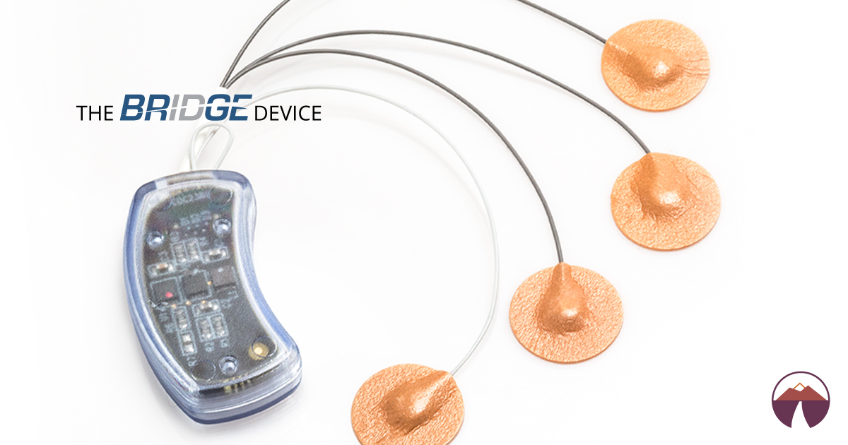 The Bridge Device is a non-invasive plastic shell the size of a modern hearing aid, which is attached behind the ear with adhesive. Combining a computer chip and advanced microtechnology, the Bridge Device sends gentle electrical pulses directly into the brain via electrodes placed in and around the ear. These electrical pulses stimulate nerve endings in key nerve centers, blocking pain signals coming into the brain and spinal column. The Bridge provides quick relief from the pain of opioid withdrawal symptoms, often in less than 15 minutes.