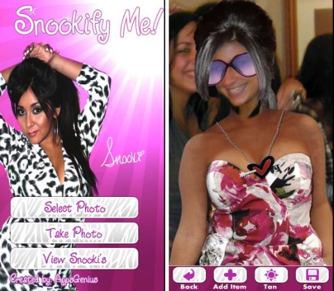 Already, Apps Genius has scored one major celebrity partner: The company has secured an agreement with Nicole "Snooki" Polizzi, the diminutive star of the reality show Jersey Shore, to deliver up to eight games and apps featuring her. The first of these mobile apps, "Snookify Me!", was released for iTunes and Android sites. It allows users to "Snookify" pictures of themselves and their friends in a matter of seconds and post them to Facebook walls, email, or upload to a "Snooki" Gallery that allows other users to rate their "Snookify Me!"-created pictures. Users of the app can choose from Snooki's different hairstyles including her famous "poof," various clothing apparel, stylish sunglasses, flashy jewelry, and even tan themselves to look like the most popular of Jersey Shore's cast members.