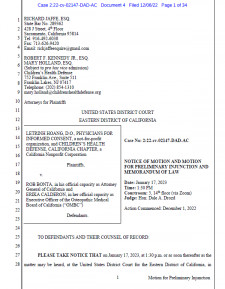 NEWPORT BEACH, Calif., December 7, 2022 (Newswire.com) - Physicians for Informed Consent (PIC), an educational nonprofit organization focused on science and statistics, has filed a First Amendment free speech lawsuit (2:22-cv-02147) in the United States District Court for the Eastern District of California, and request for preliminary injunction, against the State of California and Osteopathic Medical Board of California in order to protect the free speech of all physicians in California.