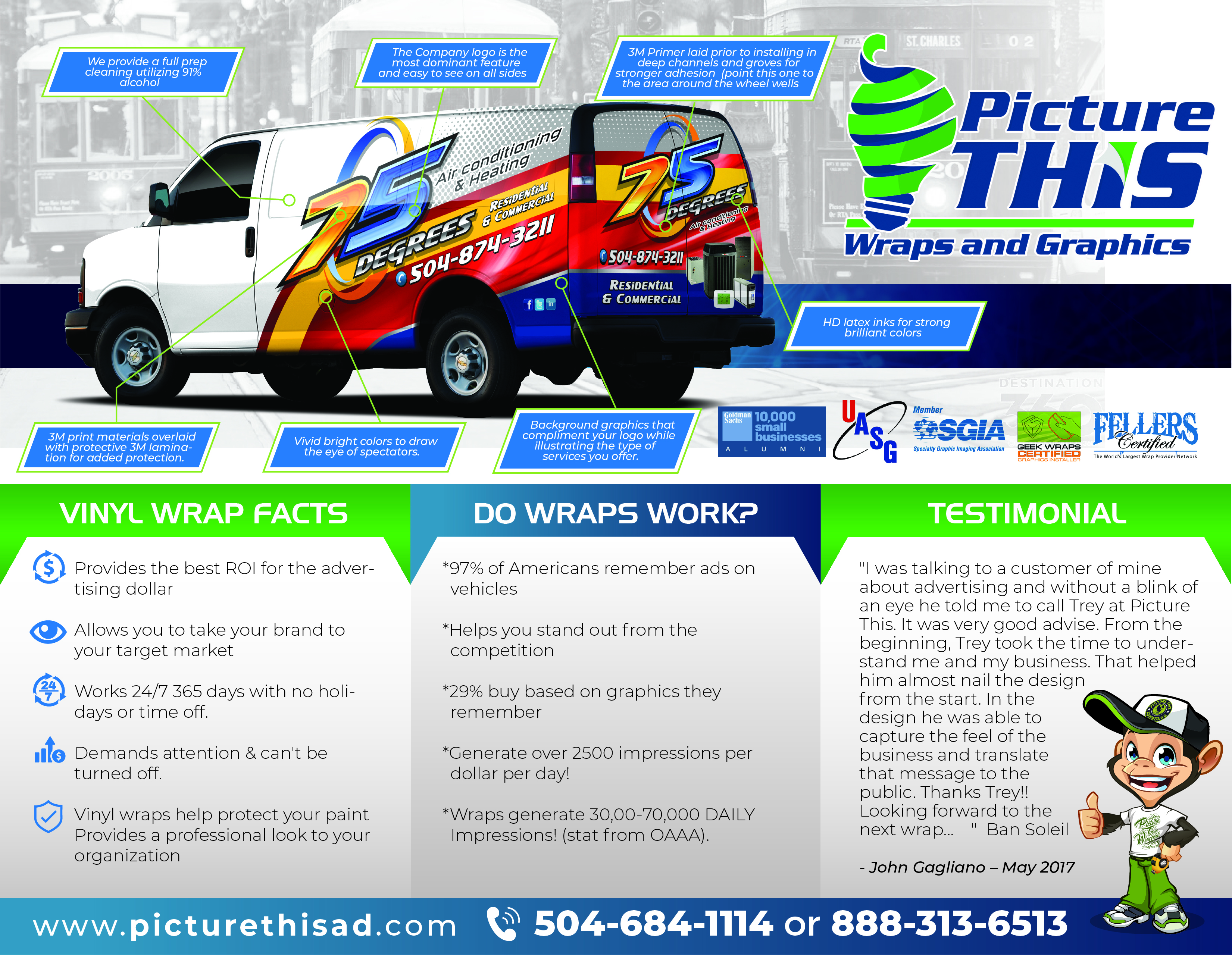 About Picture This Wraps and Graphics: Picture This Wraps and Graphics is a vinyl print business with stores in Mandeville, LA; Gulfport, MS; and New Orleans, LA. It provides exceptional vinyl vehicle and boat wraps, HVAC wraps, and more across the United States. To know more about the business, visit www.picturethisad.com/.