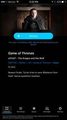PlayOn Lets PlayOn Cloud Customers Record Every Episode of Game of Thrones for $15.