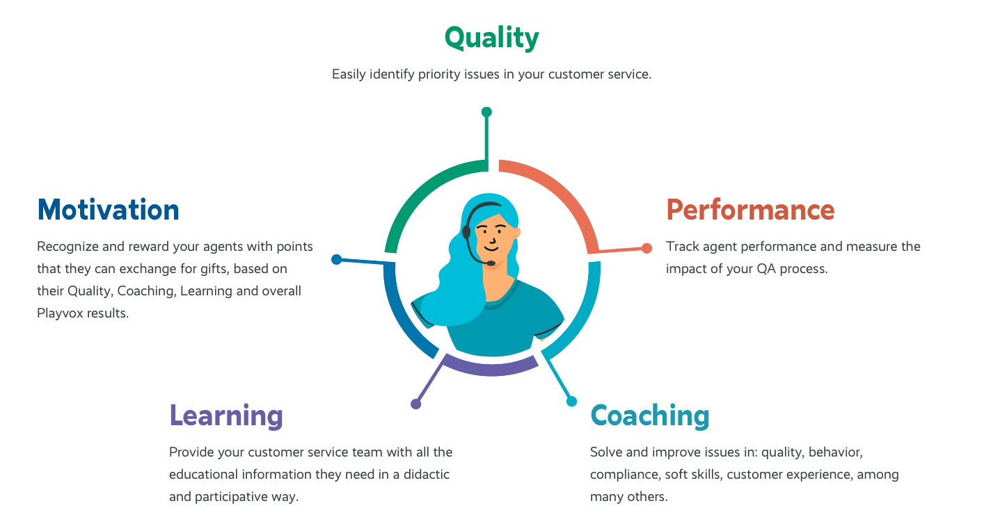 The Playvox agent optimization suite is designed to empower the entire customer service team, including agents, QA analysts, team leaders, and managers.
