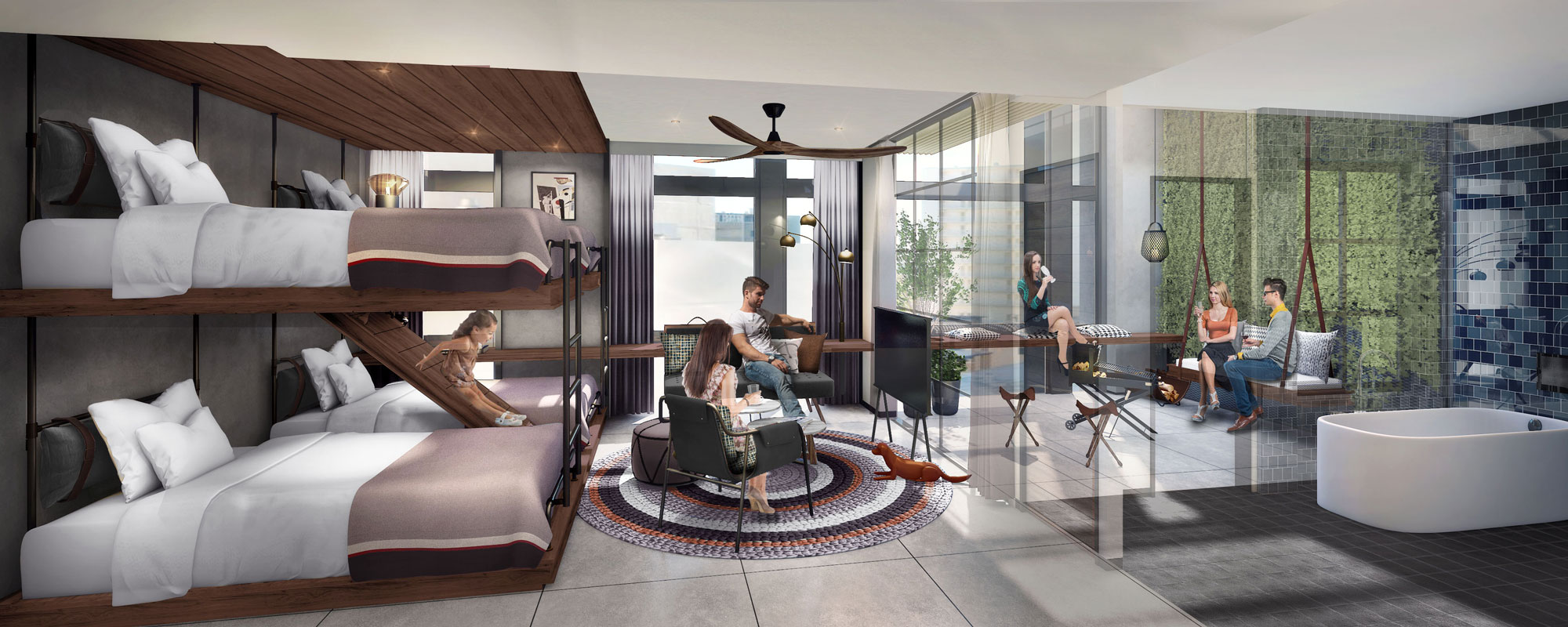 Each of THE LIVELY’s 62 rooms is greater than 19㎡, a very comfortable size for any city-hotel located in the heart of Tokyo. There will be several room types available for solo travelers, couples and families. Four-bed loft rooms for families and groups will also feature a private balcony, where travelers can enjoy a view of the Tokyo hustle and bustle from their own private quarters. All rooms will be equipped with a 30cm-thick pocket coil mattress made and certified by American manufacturer Serta.