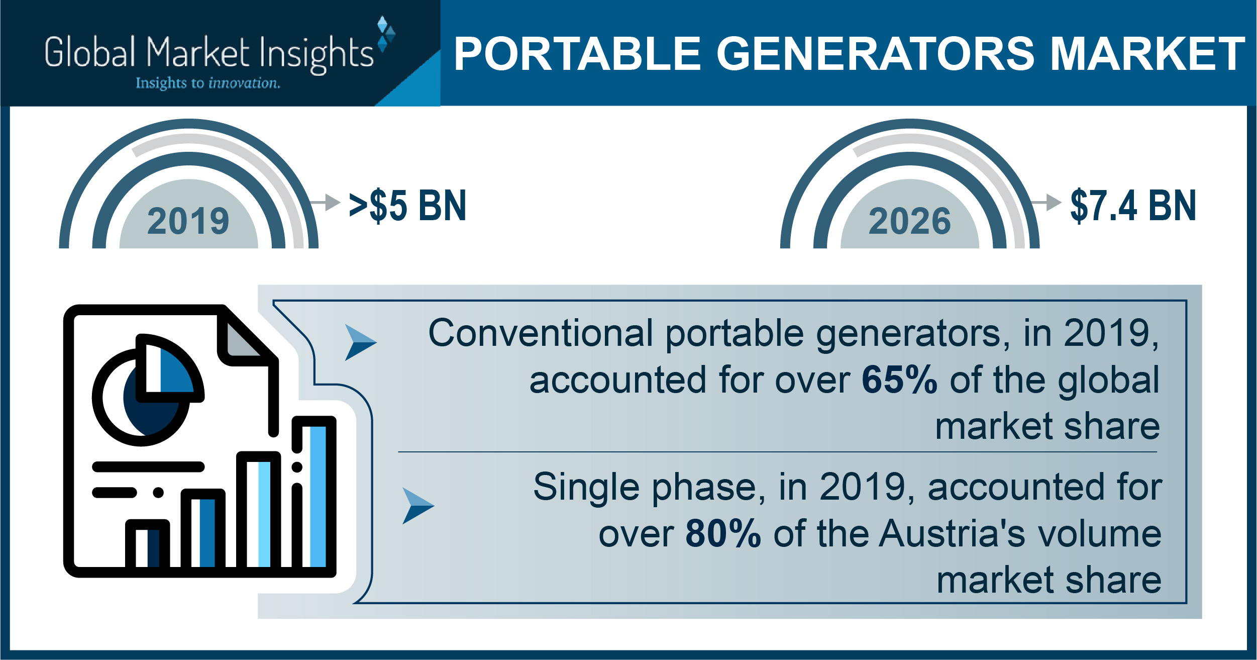 Portable Generators Market to reach $7.4 billion by 2026, says Global Market Insights, Inc.