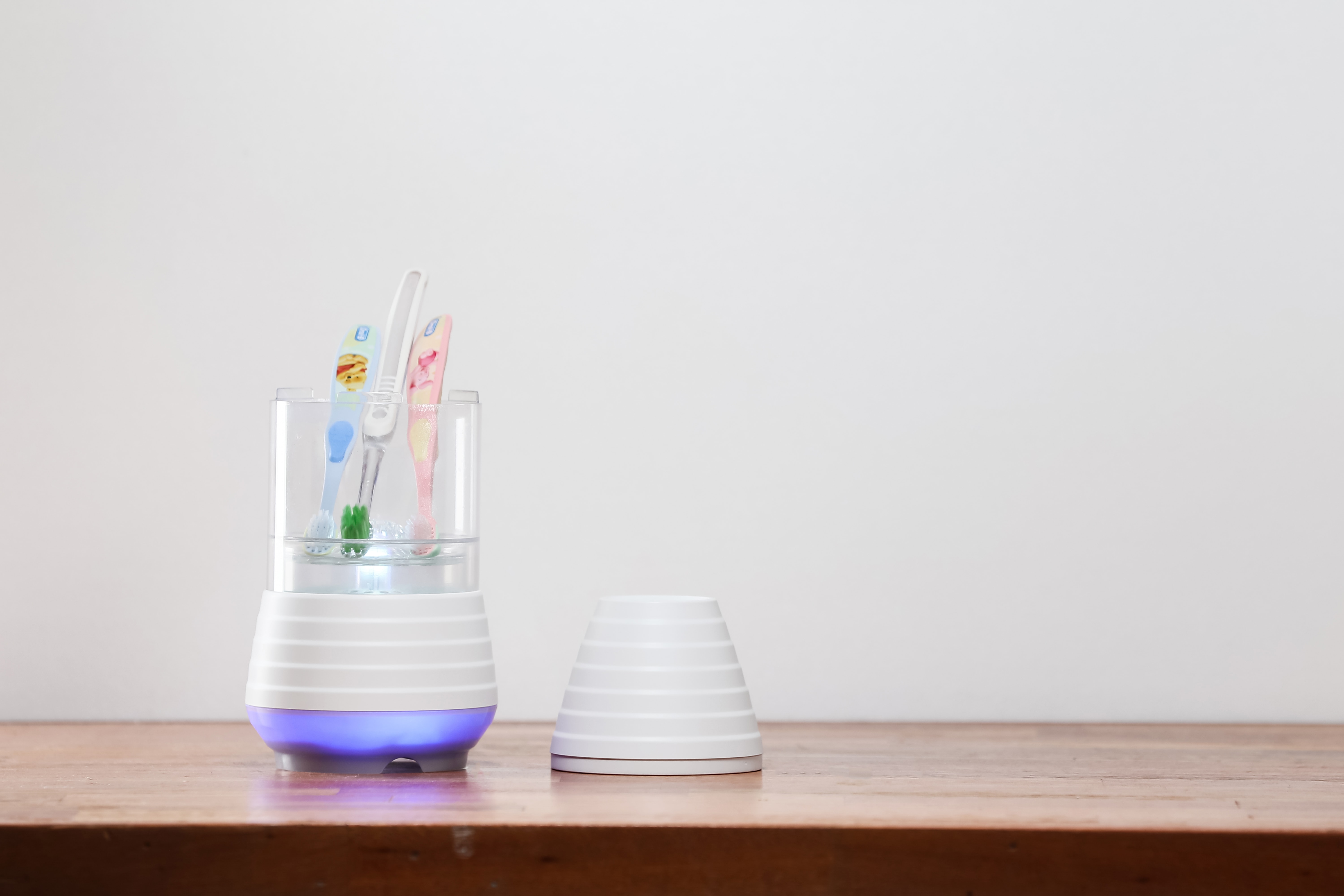 By using the 253.7nm wavelength, Klistem debilitates bacterial DNA, which effectively prohibits reproduction. Because UV-C sanitation is only effective upon contact, it is essential that rays completely reach the inside of the bottle. However, with the top-to-bottom design of current sanitation products on the market, UV-C rays are not fully distributed and are blocked by shadows. Klistem’s unique design puts the bottle upside-down, which allows gravity to pull the remaining water droplets outside the bottle. With the light and air source being at the bottom, UV-C rays and air flow reaches all the crevices of the bottle. This is the key to Klistem’s maximum sanitation.
