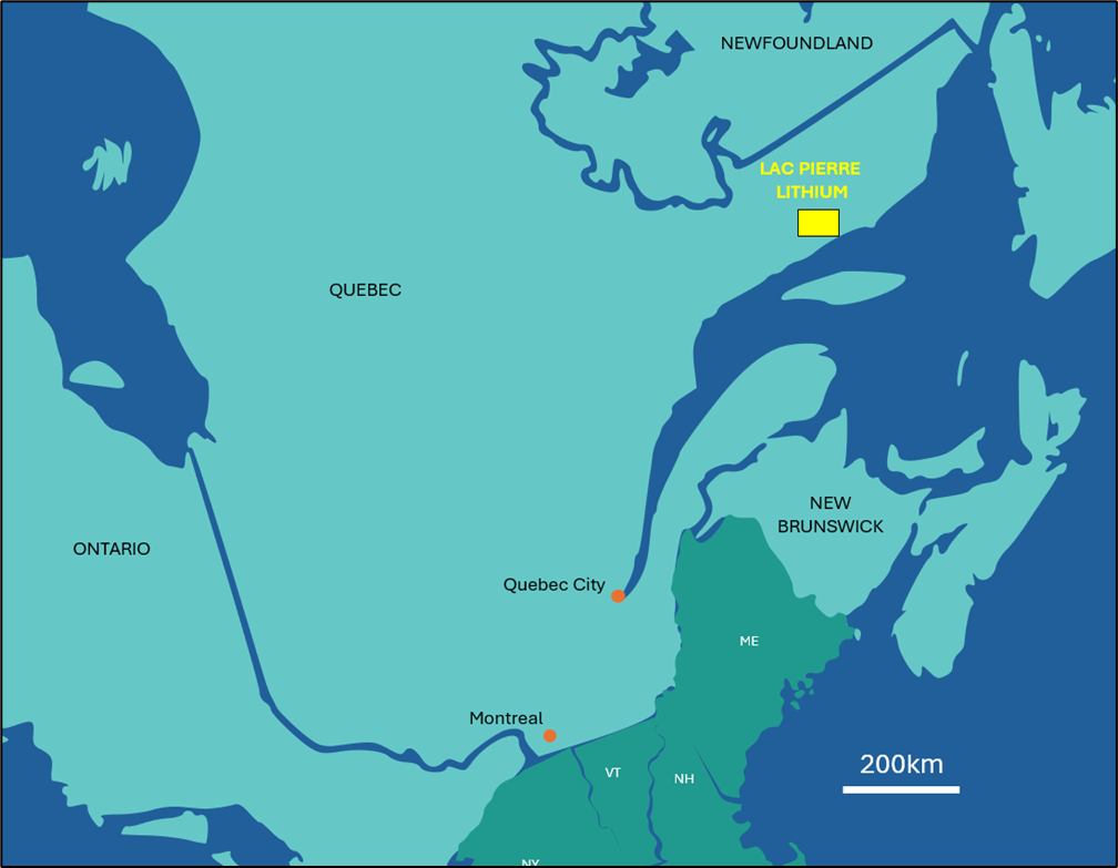 Figure 1: Lake Pierre Lithium Project, eastern Quebec