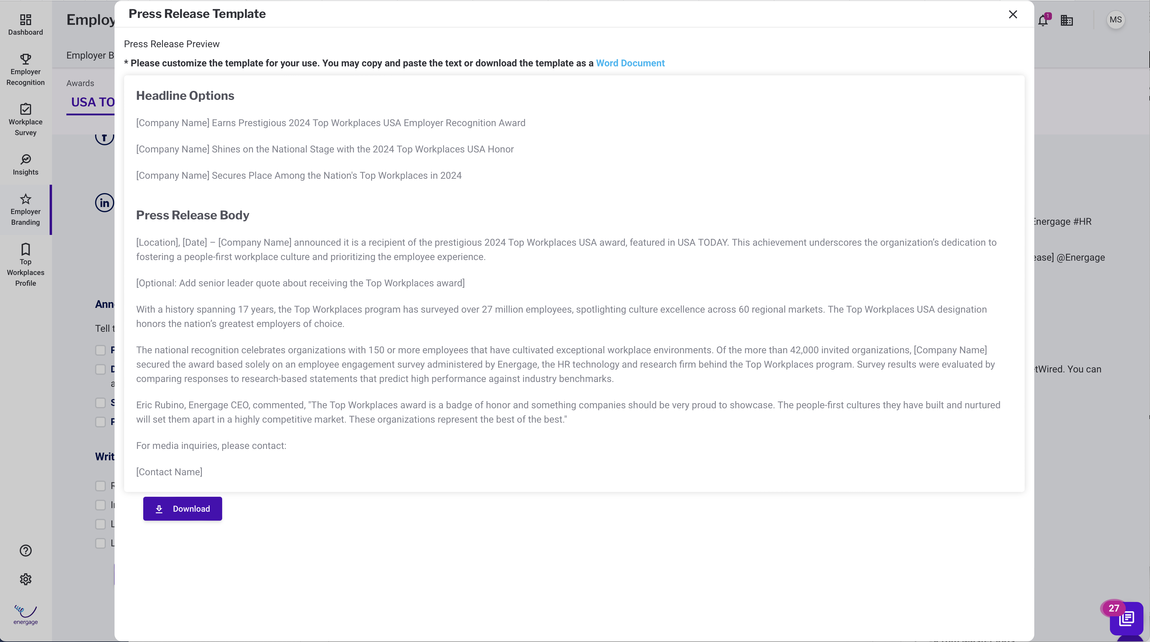 With a history spanning 17 years, the Top Workplaces program has surveyed over 27 million employees, spotlighting culture excellence across 60 regional markets. The Top Workplaces USA designation honors the nation’s greatest employers of choice.