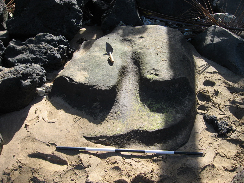 Several grinding stones at Afao utilized by the early inhabitants of American Samoa are similar to those found at other sites with dates from prehistoric Samoan periods. One grinding stone, however, is unique and evidences a tripartite design that has not been reported in other South Pacific cultures. The function of the feature is unknown and various suggestions have been proffered by Felicia Beardsley, a professor of anthropology from the University of Laverne, including that the specimen resembles sakau sitting stones from Kosrae or might represent a "birthing stone." David Herdrich, the Director of the Historic Preservation Office of American Samoa, states, "A maternity stone is a possibility. One Samoan legend recorded by the German explorer, Augustin Kraemer, notes the story of the cultural hero, Tuiosavalalo, who was named after a beach rock, born on the coast, and suckled by fish. However, before we tender assertions we must look for other archaeological parallels to explain the function of this unique feature."