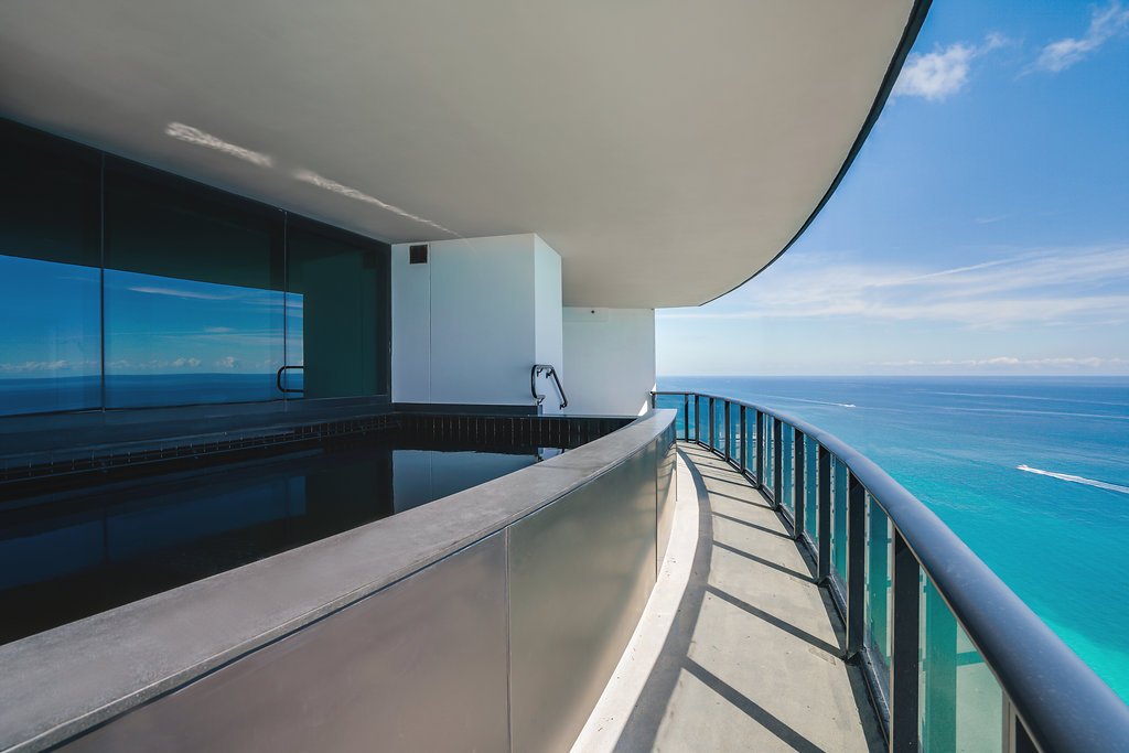 This breathtaking 4 Bedrooms, 6,5 Bathrooms, 9,474 s.f. condo, Lower Penthouse on 2 levels has 22 ft. ceilings, magnificent Ocean and City Views, private pool and summer kitchen. Split level floor plan with 1 internal elevator, 2 guest elevators and 1 robotic elevator that brings the residents, and their cars to this beautiful sky mansion located on 44 and 45th floors. The unit has 4 car garage inside the suite under A/C, separated by a glass wall, allowing the cars to be visible. At $15.4MLN the unit is priced $1.1MLN lower than other similar units in the market place.
