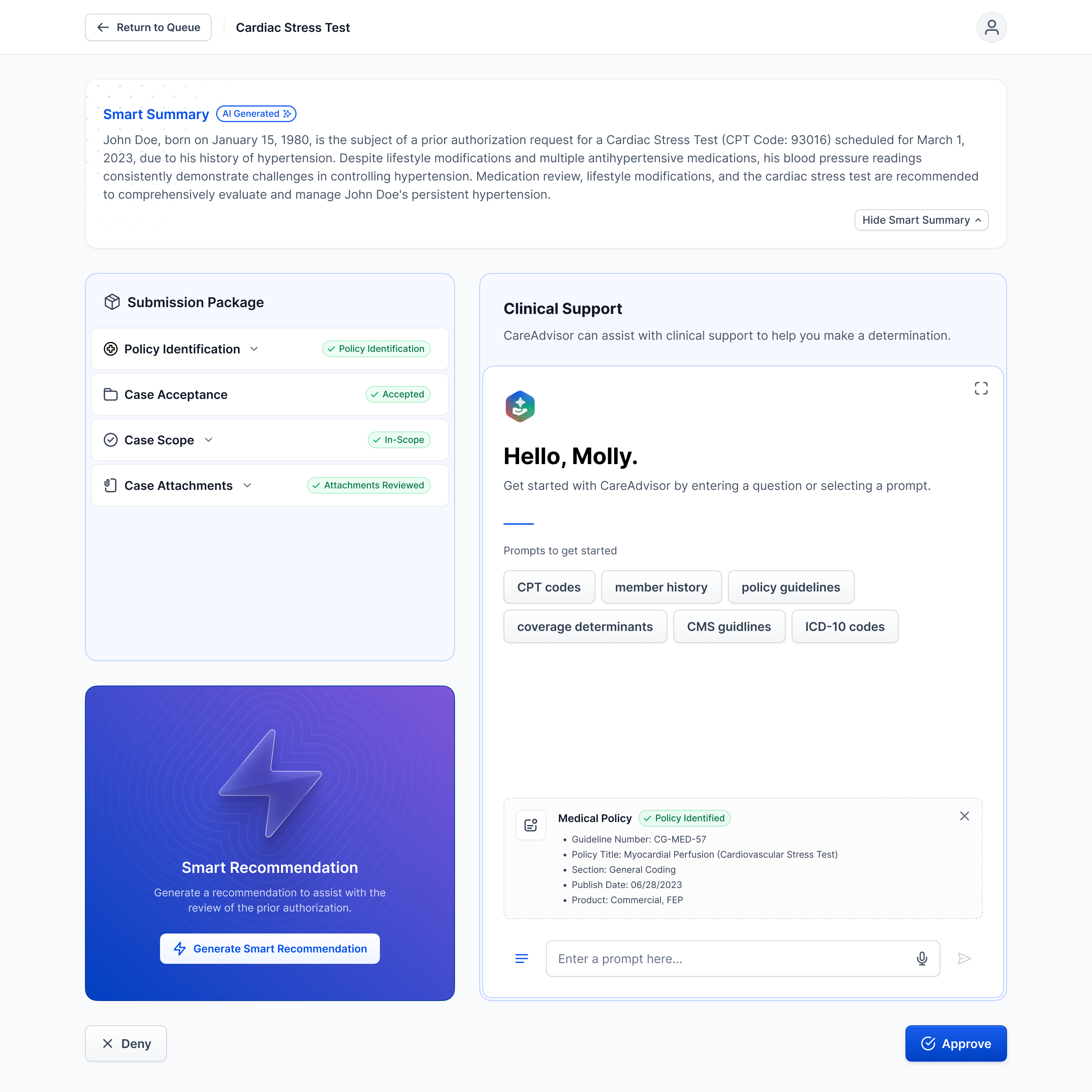 - Clinician Review: Boosts manual reviews with AI-guided policy analysis.