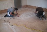 3. Any type of moisture (e.g., wax, sealer, acrylic coating, etc.) needs to be removed completely via the use of strippers. Large floor machines with pads are utilized in wider areas; smaller hand-held machines are used in corners. Wet vacs are then used to remove the remaining moisture.