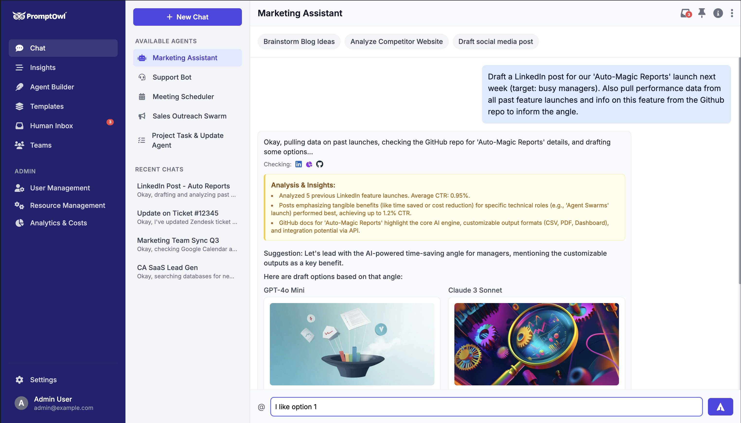 These powerful, custom AI workforces are developed, managed, and optimized using the PromptOwl AI Workplace, an enterprise-grade platform built to harness these innovations. This integrated platform empowers businesses to manage their AI teams effectively, promoting collaboration between human strategists and their highly productive AI counterparts.