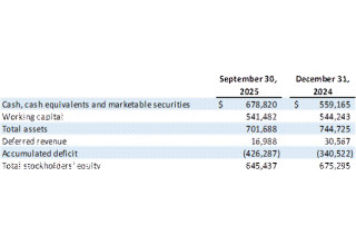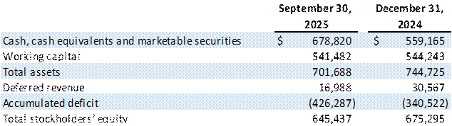Cash, Cash Equivalents and Marketable Securities : Cash, cash equivalents and marketable securities as of September 30, 2025, were $678.8 million as compared to $559.2 million as of December 31, 2024.
