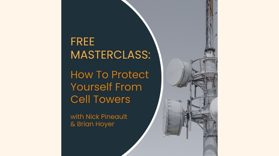 The "How To Protect Yourself From Cell Towers" masterclass is a free, pre-recorded training hosted by Nick Pineault (known as "The EMF Guy") and Brian Hoyer, a certified Geobiologist and EMF mitigation specialist. According to the registration page, the masterclass covers practical topics like identifying different types of cell towers, using free mapping tools to locate towers near your home, and understanding what independent researchers are saying about biological effects.
