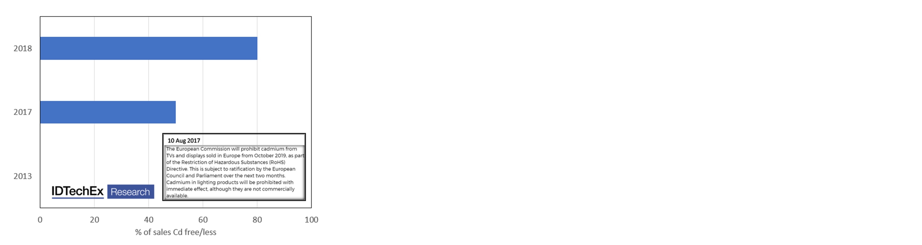 The ban on cadmium (Cd) in Europe is finally announced for October 2019. Even prior to this announcement, Cd QDs had appeared only as a transitory solution, a technology on borrowed time.