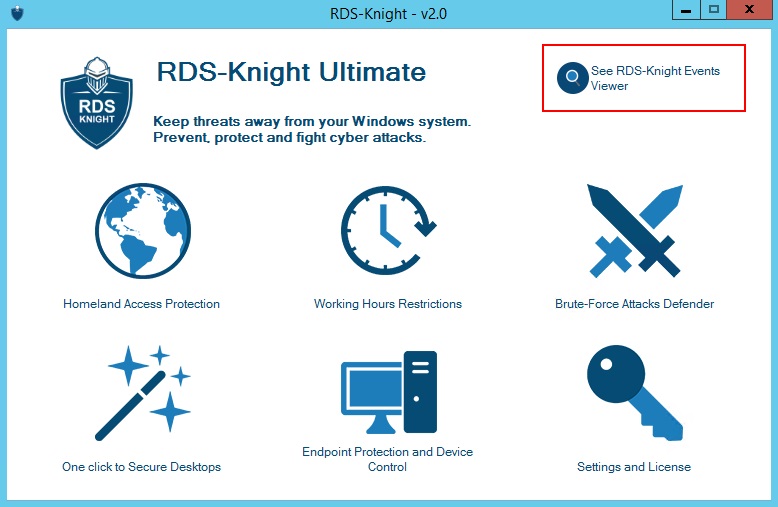 That means that every event and action taken to secure TSplus sessions is now referenced in the "see RDS-Knight Events Viewer" section, accessible from the main dashboard.