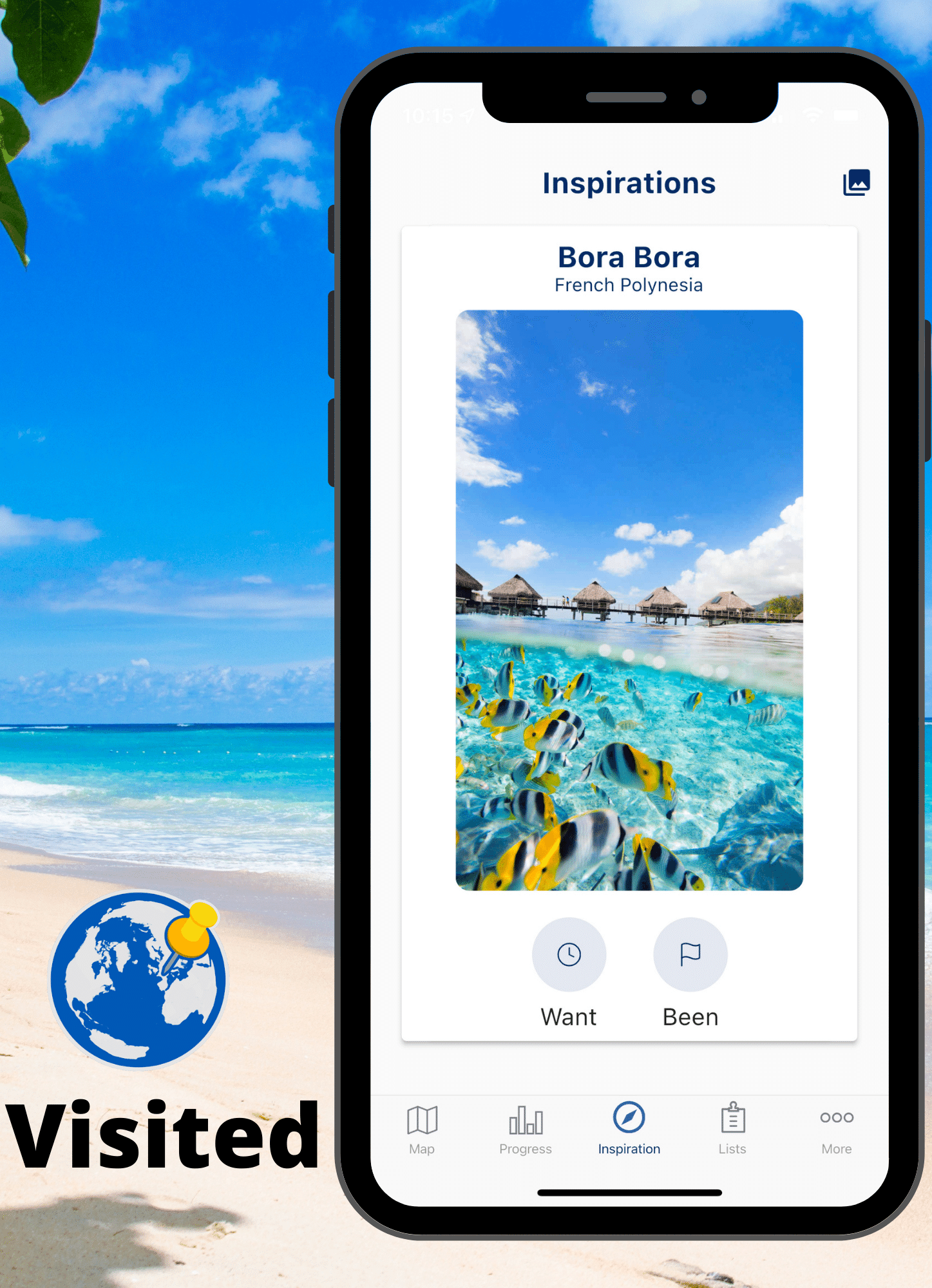 Users can also leverage the Inspiration feature to discover new destinations with an intuitive swiping experience. By scanning popular and less viewed travel places, users can visualize and plan their next adventure on the Visited App with ease.