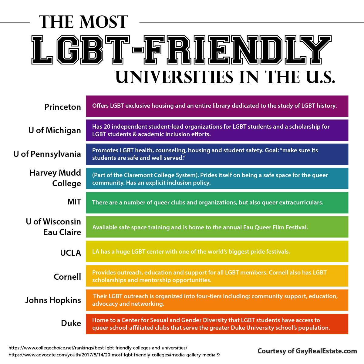 The GayRealEstate.com team hopes their list helps students through the journey of finding a community where they can live, and learn, with dignity.